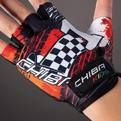 Chiba 2019 - Guanti da Ciclismo per Bambini, Corti, Colore: Arancione/Nero, Bambini, Orange, S
