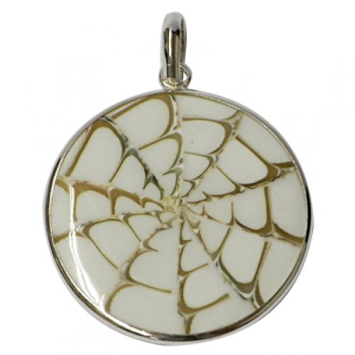 Chic-Net conchiglia a forma di Spider conchiglia ciondolo, ciondolo a forma di conchiglia spinnengewebartiger, di colore bianco-beige con muro di mattoni dipinto, ornata di argento, {925} circa 30 mm