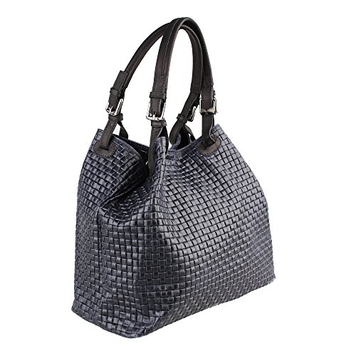 Chicca Borse Borsa a Mano da Donna con Tracolla in Vera Pelle Stampa Intrecciata Made in Italy 34x29x18 Cm