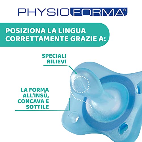 GOMMOTTI PHYSIOFORMA: all'interno del set sono presenti 2 gommotti PhysioSoft di Chicco in morbido silicone, aiuta a posizionare la lingua in avanti e in alto lasciando aperte le vie aeree. Morbido e delicato sul viso del bambino, comodo anche durante la nanna