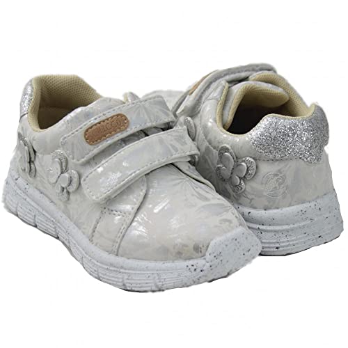 Chicco Courtney - Scarpe per bambini argento con farfalle Velcro Trnaspirabile Leggero e Suola Estraibile, bianco, 27 EU