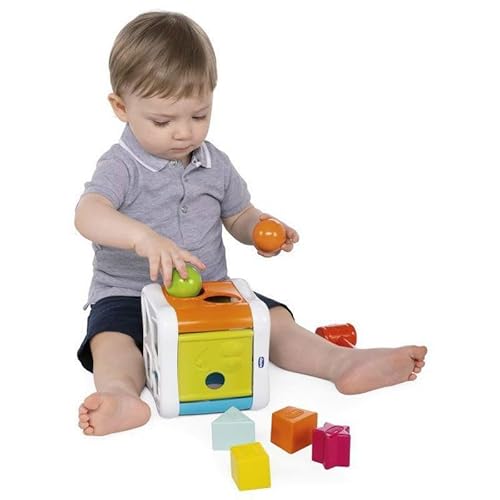Chicco Cubo Incastra e Martella 2 in 1, Gioco Forme e Incastri per Bambini con 4 Forme Geometriche, 2 Sfere e Martello Giocattolo, Cubo Multiattività - Giochi Educativi 10 mesi - 3 Anni
