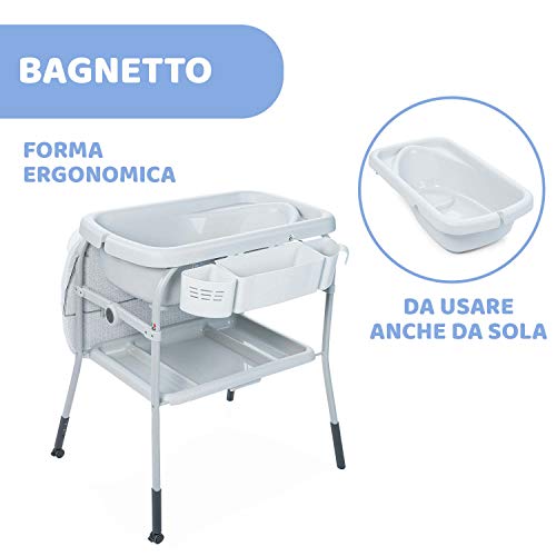 Chicco Cuddle & Bubble Vaschetta Bagnetto Fasciatoio Neonato Ergonomico con Materassino e Morbido Riduttore, Altezza Regolabile, Chiusura Compatta, Parent Organizer 2 Ruote, Max 11kg - Dots, Grigio
