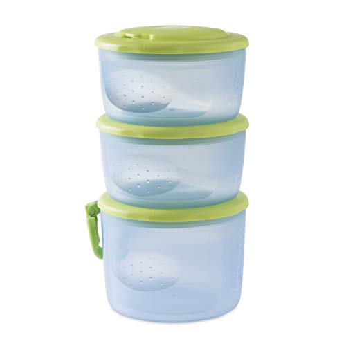 La confezione comprende un set di 3 contenitori porta pappa ermetici