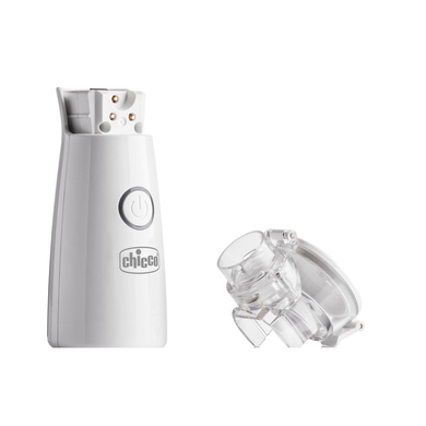 40dB e ideale per l'uso da parte di tutta la famiglia Nebulizza 1 ml in 3 minuti Facile da trasportare Include 6 batterie e 2 mascherine morbide Incluso nella consegna chicco Mini inalatore Air Mesh 6 batterie e 2 mascherine morbide