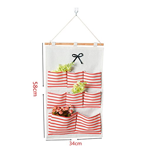 Chicieve portaoggetti da appendere con 8 tasche - cameretta Storage Fortoys, pannolini, occhiali, telefono, portamonete, chiavi,-Closet Hanging Storage Bag organizer Red Stripes 8
