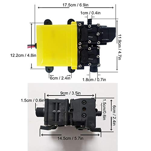Dati di riferimento: il diametro dell'ingresso dell'acqua è 10 mm e la filettatura maschio dell'uscita dell'acqua è 18 mm, facile da installare Volt: DC12V, Potenza: 120 W, Pressione di esercizio: 1.0mpa, Portata: 8L / min, Dimensioni: Circa. 175x119x60mm / 6.89x4.69x2.36 pollici