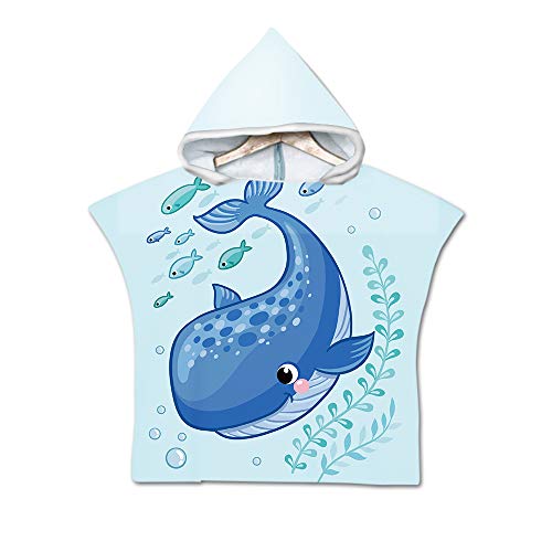 Chickwin Asciugamano Poncho Bambino, Cartone Animato Kids Accappatoio Microfibra Asciugatura da Bagno con Cappuccio Asciugatura Rapida per Spiaggia Bagno (60x80cm,balena)