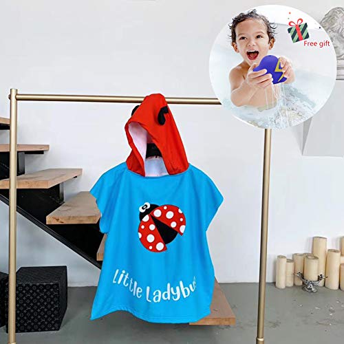 Chickwin Asciugamano Poncho Bambino, Cartone Animato Kids Accappatoio Microfibra Asciugatura da Bagno con Cappuccio Asciugatura Rapida per Spiaggia Bagno (60x120cm,Insetto blu)