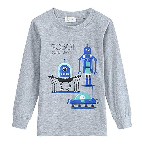 Chickwin Bambini Pigiama Set con Lunga Maniche, Unisex Creativo Cartoon Stampa Cotone Pigiama Set Due Pezzi Pigiama,per Ragazzi e Ragazze (120cm,Robot)