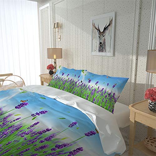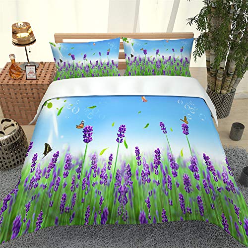 Chickwin Set Copripiumino 3D, Viola Lavanda Stampa Set di Biancheria da Letto 3 Pezzi con Copripiumino e Federa (50x75cm) per Letto Singolo Matrimoniale King (Lavanda Viola,140x200cm)