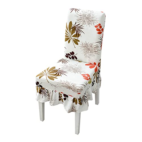 Chickwin Coprisedie Elasticizzato con Gonna, Stampa Fiori Coprisedia con Schienale 1 2 4 6 8 Pezzi, Fodere per Sedie da Pranzo Fodere Coprisedia per Matrimonio Cucina (Foglie rosse,6 Pezzi)