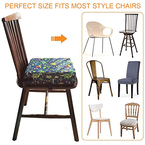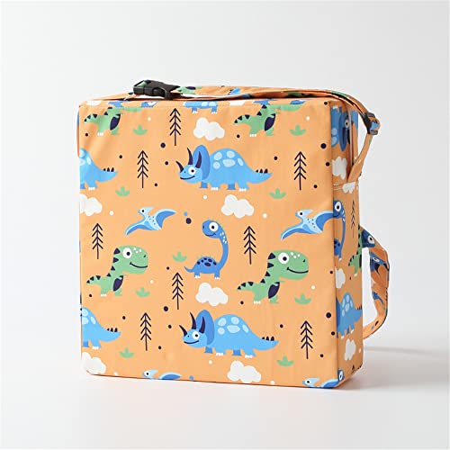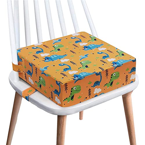 Chickwin Cuscino Rialzo Sedia per Bambini, Cartone Animato Stampa Cuscino Alzasedia con Cinghie Regolabile Lavabile Smontabile Cuscino Seduta per Sedia da Pranzo (32x32x8cm,dinosauro arancio)