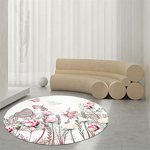 Chickwin Tappeto Rotondo Antiscivolo, Stampa Farfalla Tappeti Salotto Moderno Tappeto Grande Morbido Pelo Corto per Decorativo Soggiorno Camera da Letto (Farfalla Rosa,Diametro 120cm)