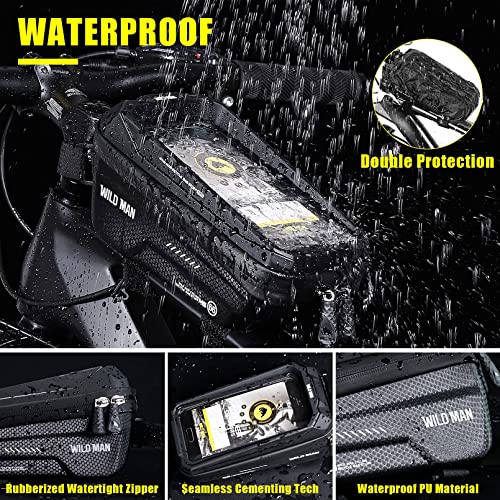 CHICLEW Borsa Manubrio Bici, Borsa Telaio Bici Impermeabile Grande Capacità, Borsa Bici con TPU Touch Screen e Visiera Parasole, Porta Telefono Bici per iPhone Samsung Smart Phone 6,7”
