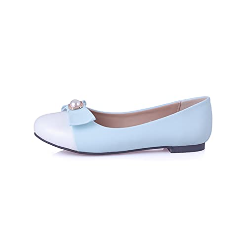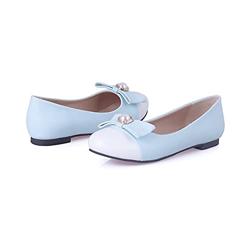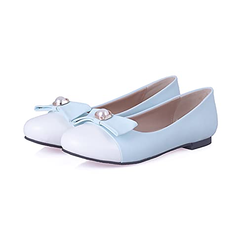 CHICMARK Scarpe basse comode con pizzo rotondo per donna, Azzurro 1, 32 EU