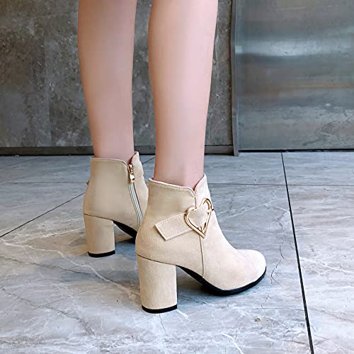 CHICMARK Stivaletti da donna comodi, con tacco a blocco, per lavoro/appuntamenti, beige., 44 EU