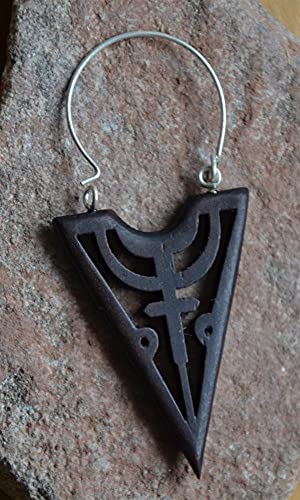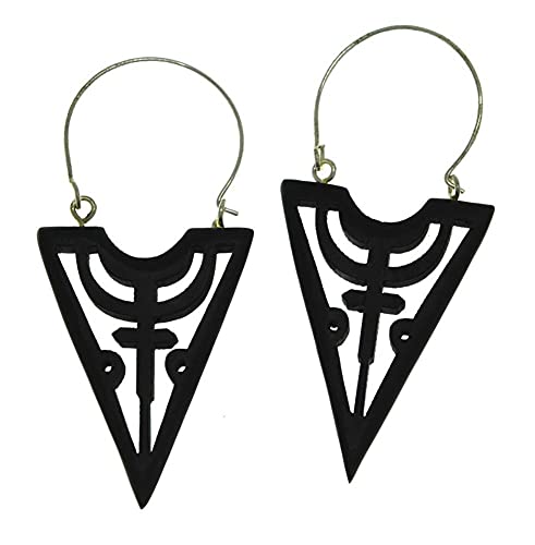 TRIBAL ETHNO Orecchini a tre anelli da donna in legno nero con ferretto in argento in ottone bianco - Stai cercando orecchini alla moda e chic in stile organico? Allora questi orecchini neri a forma di triangolo con croce sono perfetti per te