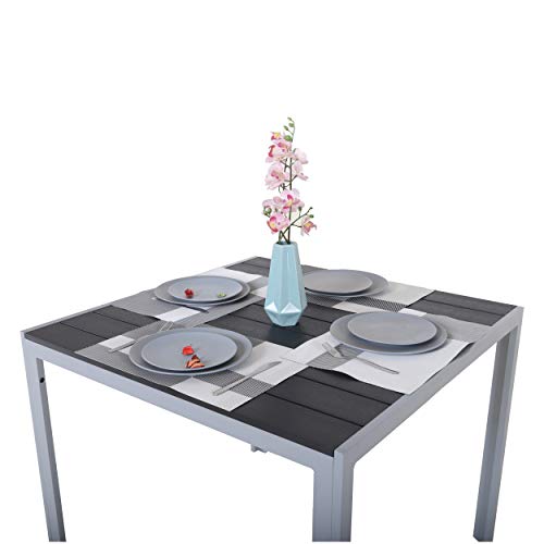 Chicreat Tavolo in alluminio con superficie in polywood, 90 x 90 x 75 cm, argento e nero