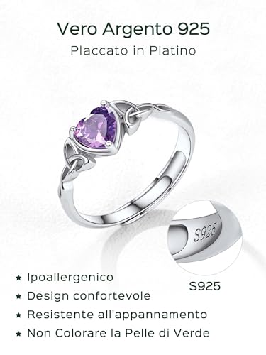 MATERAILE: Anelli donna regolabili in argento 925, durevole, non si arrugginisce, è un prodotto naturale ricco di benefici per la pelle, pietra preziosa: ametista simulata, misura regolabile da 12-27.