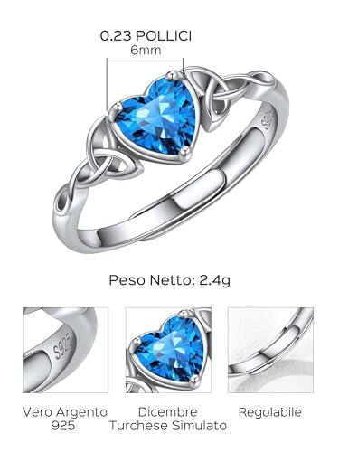 ChicSilver Anelli Donna Argento 925 Regolabili con Turchese Pietra Portafortuna Decembre Anello Regolabile Donna Pietra Anello Regolabile Donna con Confezione Regalo