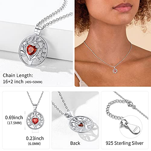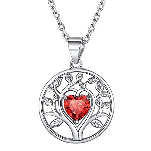 ChicSilverCollana Donna Albero della Vita Argento 925 Collane con Pietra Portafortuna Luglio Rubino, Collana Donna Argento Pietra Cuore con Confezione Regalo