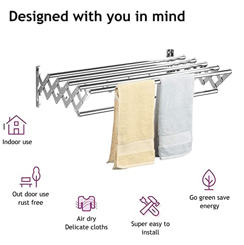 CHICTI Stendibiancheria Telescopico da Parete Stendino Estensibile A Fisarmonica in Acciaio Inox Antiruggine Montaggio A Muro (Size: 60cm)