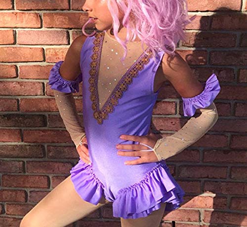 CHICTRY Body da Danza Classica Bambina Paillettes Tuta da Ginnastica Body Volant/Manicotti Abito da Ballo Pattinaggio Artistico Costume Carnevale Bodysuit Gioco di Ruolo Lavanda 5 anni