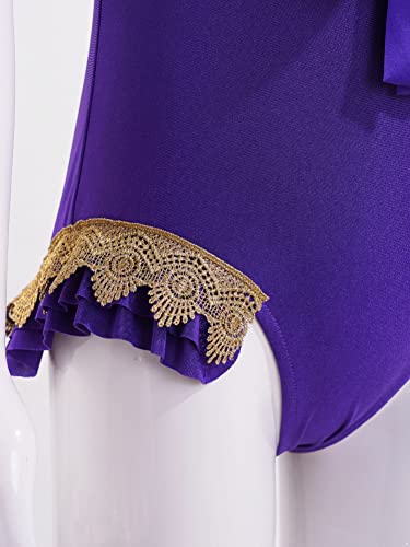 CHICTRY Body da Danza Classica Bambina Paillettes Tuta da Ginnastica Body Volant/Manicotti Abito da Ballo Pattinaggio Artistico Costume Carnevale Bodysuit Gioco di Ruolo Viola B 6 anni