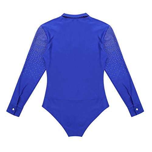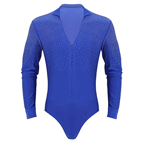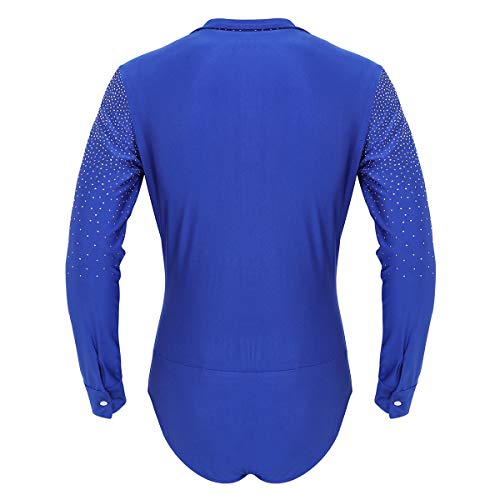 CHICTRY Camicia da Latino Moderno Uomo Slim Fit Costumi da Ballo Dancewear Tango Samba Rumba Pratica Prestazione Body da Danza Classica Competizione Festa Nero Bianco Blu Blu Reale XXL