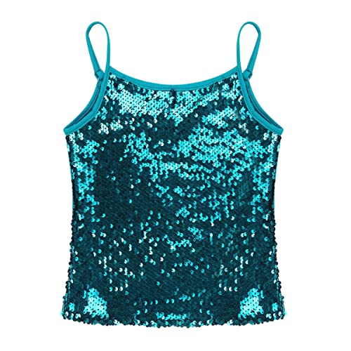 CHICTRY Canotta da Danza Moderna Paillettes Top Corto da Ballo Jazz Hip Hop Glitter Bambina Maglietta Canottiera Sportiva Abito da Ballo Latino T-Shirt Tempo Libero Carnevale Lago Blu 9-10 Anni