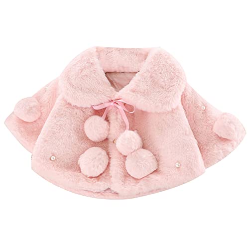 CHICTRY Cappotto da Neonate Mantello in Pelliccia Sintetica Cappotto da Principessa Capispalla Mantellina Giacca Calda Adorabile Poncho Abiti Invernali Abito da Battesimo Rosa 0-6 mesi
