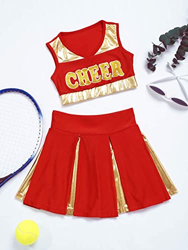 CHICTRY Costume Cheer-leader Bambina Uniforme Scuola Vestito da Cheerleading Crop Top con Gonna a Pieghe Football Americano Cosplay Travestimenti Costume di Halloween Festa Rosso B 10 anni