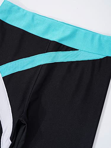 Pantaloni da pattinaggio su ghiaccio elastici attillati da bambina a blocchi di colore Leggings sportivi