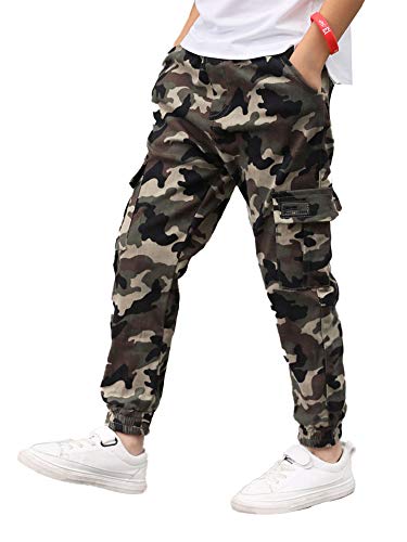 CHICTRY Pantaloni Sportivi Bambini in Cotone Pantaloni Mimetici Ragazzi Pantaloni Lunghi con Tache Camouflage Salopette Tuta Ginnastica Running Jogging Jazz Hip Hop Verde 12 Anni