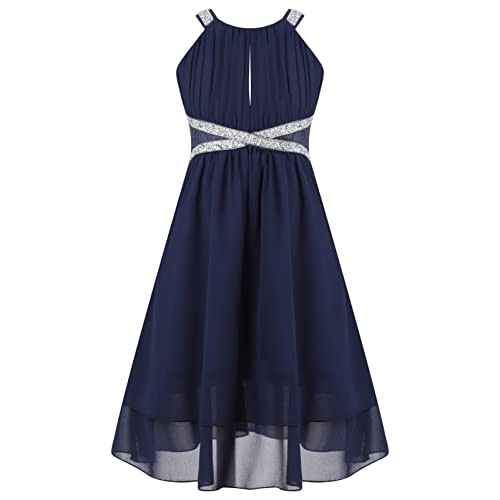 Abito da principessa da bambina, con allacciatura al collo, in chiffon, per compleanno, festa, estate