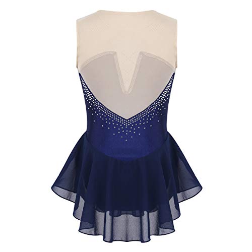 CHICTRY Vestito Pattinaggio Artistico sul Ghiaccio Bambina Senza Maniche Strass Glitter Vestito Danza Classica Tutu Balletto Costume da Ballo Ginnastica Ballerina Dancewear Blu D 7-8 Anni