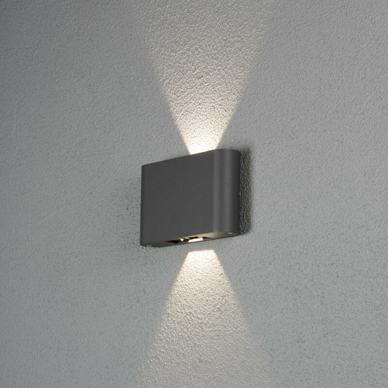 Konstsmide Chieri Applique da esterno moderna Up Down 2x 6W Fascio orientabile grigio scuro, IP54 | Finitura: Grigio Antracite | Materiale: alluminio | Grado di protezione IP: IP54 | Altezza: 11,5 cm | Larghezza: 18 cm | Profondità: 4,5 cm | Tipo di lampada: LED integrato | Lampadina inclusa: Sì