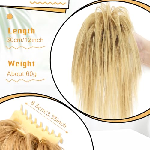 【Facile da usare】 Chignon ondulato disordinato con capelli sintetici con clip invisibile, facile da indossare e rimuovere. Perfetto per aggiungere volume e pienezza a uno chignon o una coda di cavallo, elegante e adorabile.