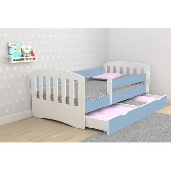 Children's Beds Home Letto Singolo Classic 1 - per Bambini Bambini Junior con cassetti e Materasso in Schiuma da 8 cm Inclusi (Blu, 140x80)