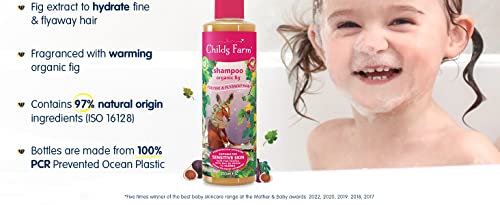 Childs Farm Shampoo per bambini da 250 ml, fico biologico, capelli fini e volanti, districa e nutre, adatto per pelle secca e sensibile e soggetta a eczemi e cuoio capelluto