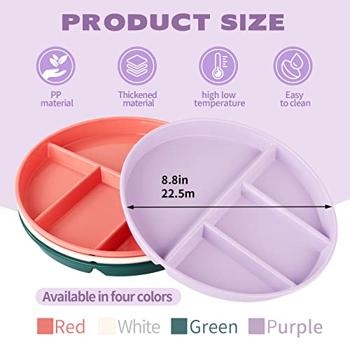 Chililon Set Di 4 Piatti Piani Infrangibili, Per La Dieta Divisi, Piatto diviso inquattro per dieta,Di Alta Qualità, Sicuri Per Adulti E Bambini