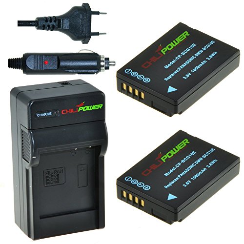 ChiliPower DMW-BCG10, DMW-BCG10E Kit: 2 x batterie + caricabatterie per Panasonic Lumix, DMC-TZ6/TZ7/TZ8/TZ10/TZ18/TZ19/TZ20, DMC-TZ25, DMC-TZ30, DMC-TZ35, DMC-ZR1, DMC-ZR3, DMC-ZS1->DMC-ZS1->DMC-Z