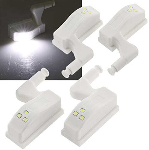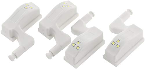 ChiliTec - Set di 4 cerniere per armadio a batteria a LED, 4 pezzi, universale, per cucina, armadio, funzionamento a batteria, colore: Bianco