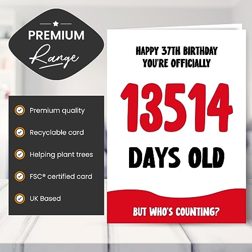 Un divertente biglietto di compleanno per uomini e donne di qualsiasi età. Il biglietto perfetto per inviare un divertente compleanno con i migliori auguri. La seguente scritta è sulla parte anteriore del biglietto: Happy 37th Birthday You're Official 9496 days old but who 's counting?