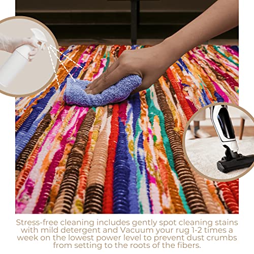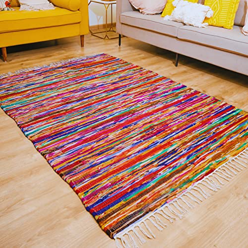 Chindi Floor Carpet - Tappeti Soggiorno, Multicolore, 183x122 cm, Tappeto in Polar Chindi per la Decorazione Della Stanza, Tappeti Colorati Fatti a Mano in Tessuto Riciclato