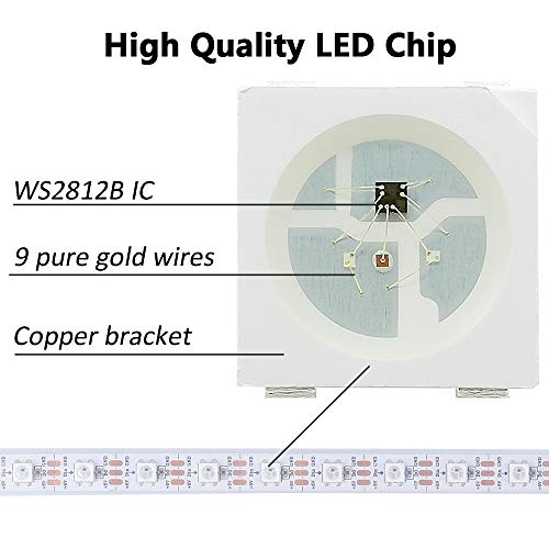 Strip LED programmabile a colori a sogno, WS2811 IC Costruito in 5050SMD, 256 display di luminosità e display a colori a 24 bit. Ogni pixel può avere il proprio colore e la sua luminosità. È possibile controllarli individualmente e impostarli a qualsiasi colore o animazione che desideri.