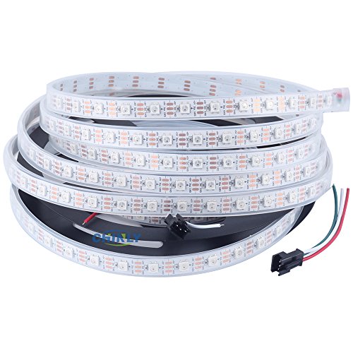 CHINLY 5m WS2812B Luce a striscia a LED individuale 5050 RGB SMD 300 Pixels Colore del sogno Impermeabile IP67 bianca PCB 5V DC