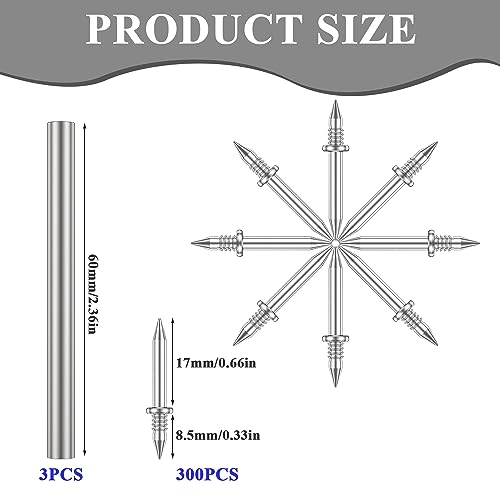 【Dimensioni e quantità】: lunghezza di 25,5 mm (17+8,5 mm), 300 chiodi a doppia testa e 3 utensili per maniche. I chiodi sono adatti per materiali più spessi di 10 mm.
