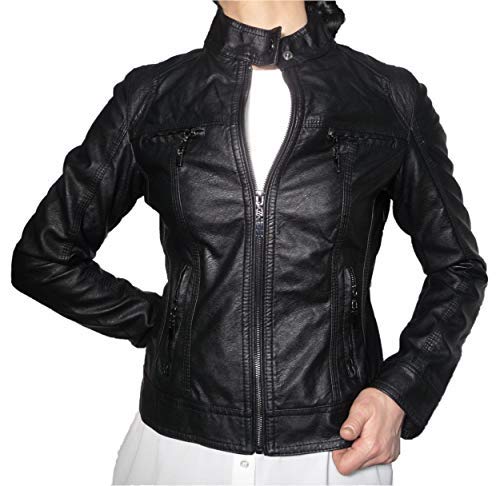 Chiodo Giacca Giacchetto Foderata Giubbino Finta Pelle Ecopelle Corto Slim Avvitato Aderente Skin Donna Ragazza (48 Petite, Nero)